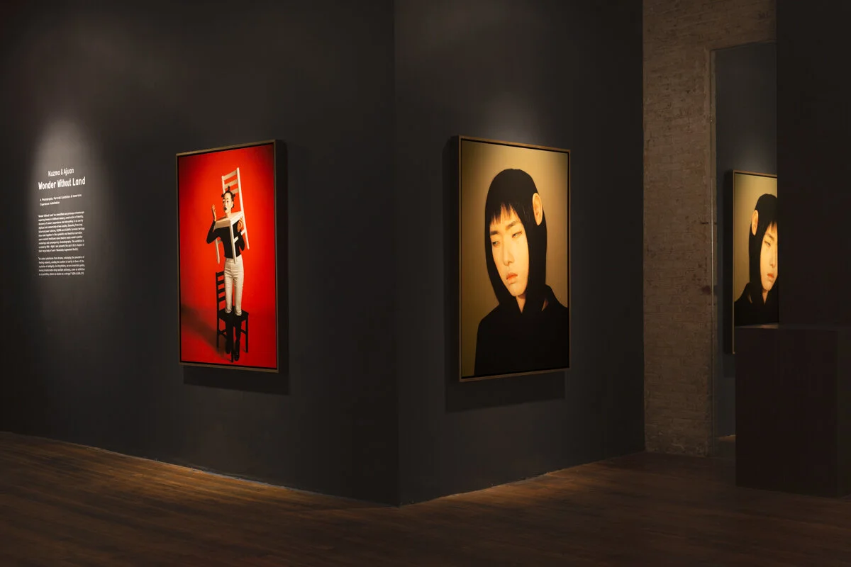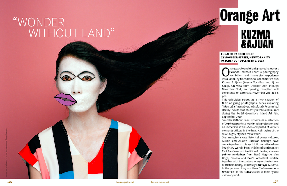 "The hybrid collaborative artist duo of Kuzma & Ajuan, composes highly stylized neo-surrealistic photographic narratives based on eurasian and pop iconographic study, hand-drawn sketches and object making without any digital manipulation. In the exhibition “Wonder Without Land”, staged photography and artifacts bring symbolic resonances to our collective fantasmal memories of a mystical life journey crossing paths with unusual characters and fantastical treasures in a symbiotic fashion." Coco Dolle, Curator - Wonder Without Land.